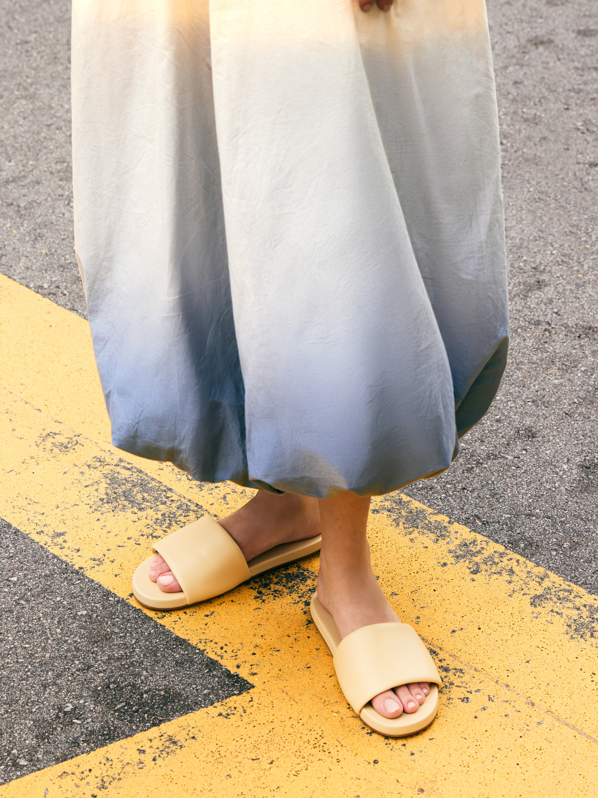 • 431C1BE3-2884-4994-9D4E-E96E091346AE Created with sketchtool. Slide into effortless style and buttery comfort. Whether you're stepping out or staying in, these slides feels as good as it looks—utterly comfortable and effortlessly chic.