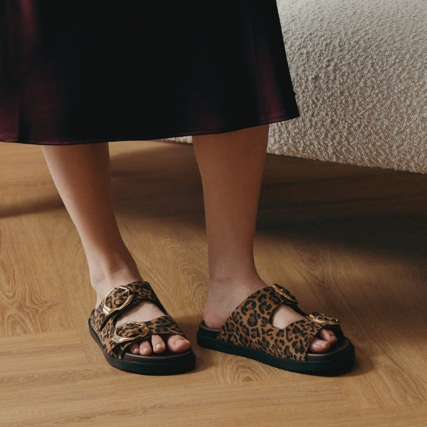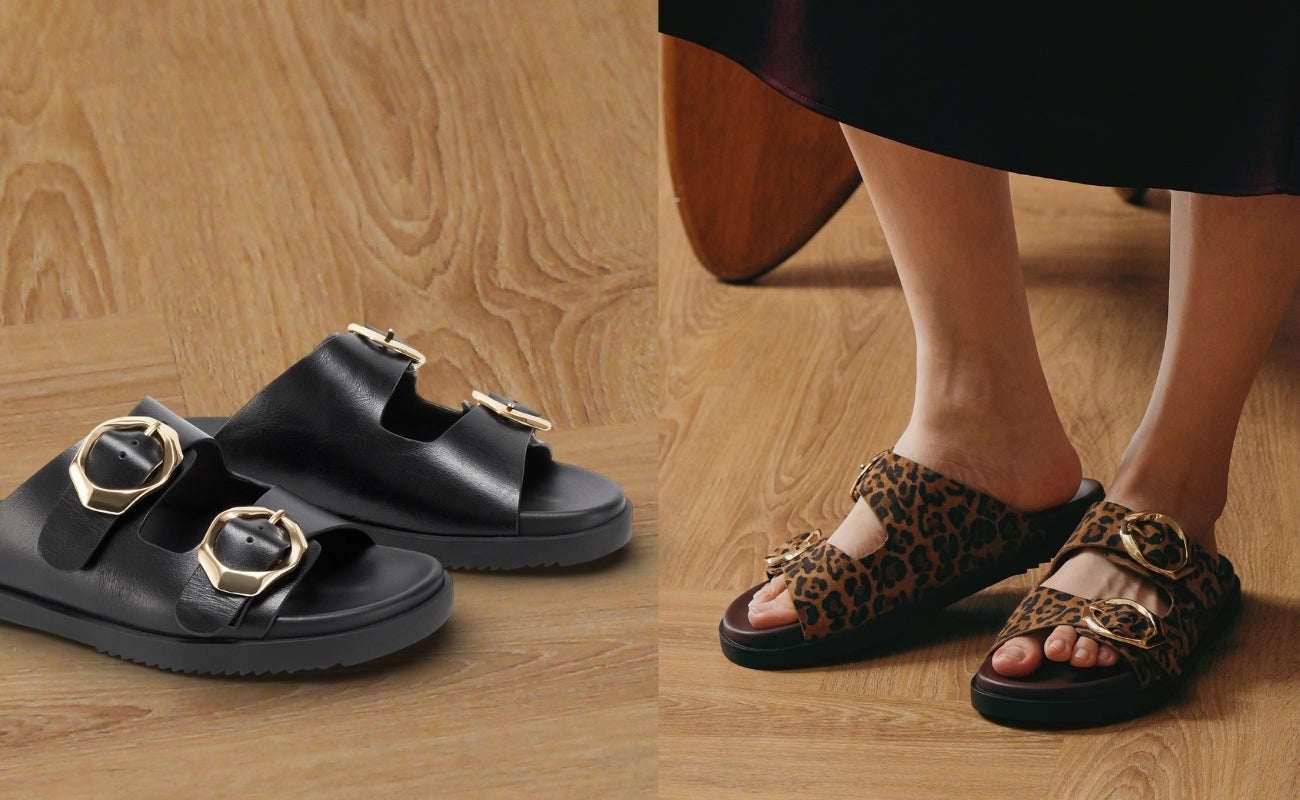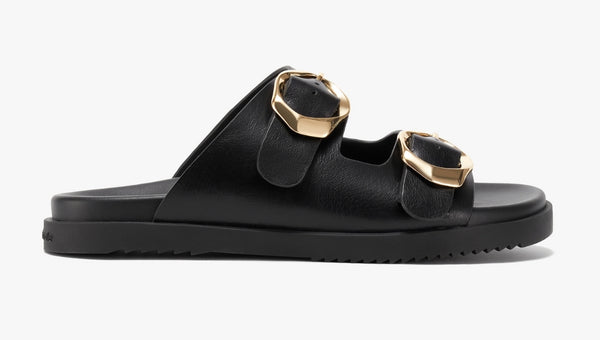 Roma’s double-buckle design adds sculptural character that stands out instantly. Despite its boldness, the cushioned footbed keeps it incredibly soft and wearable all day. It’s a stylish yet practical slide for confident everyday dressing.