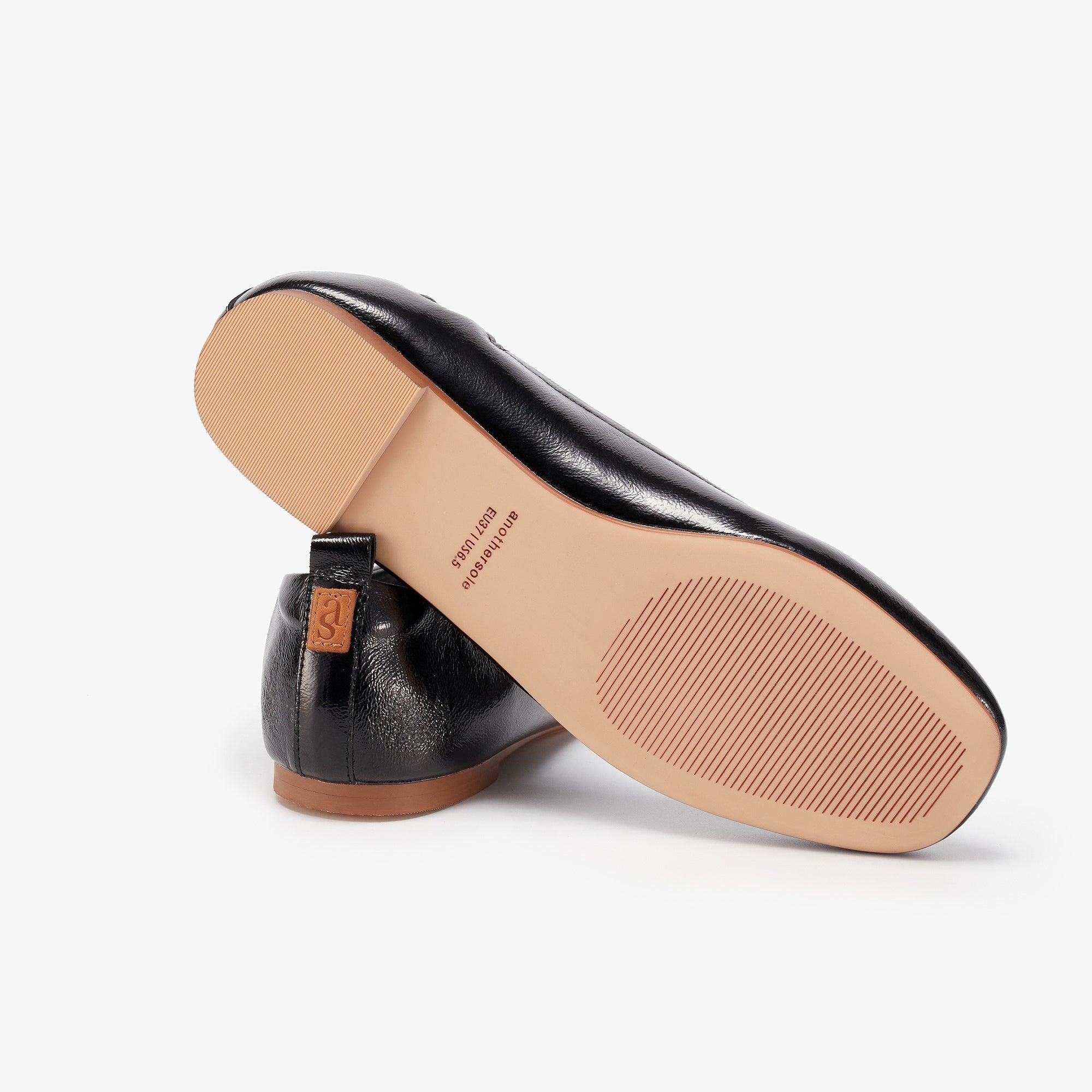 • 431C1BE3-2884-4994-9D4E-E96E091346AE Created with sketchtool. Sleek. Modern. Effortless. This glossy patent flat elevates every outfit with minimalist shine.