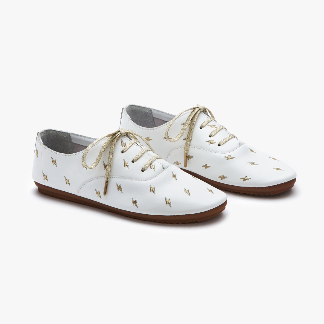 - Dressy yet effortlessly cosy, this electrifying pair will add new sparks to your wardrobe. Metallic flash lightning details and matching laces dial up the energy, while our top-grade bovine leather lets you seize the day without a scratch. Slip them on, and you’re all set to take the city by storm.