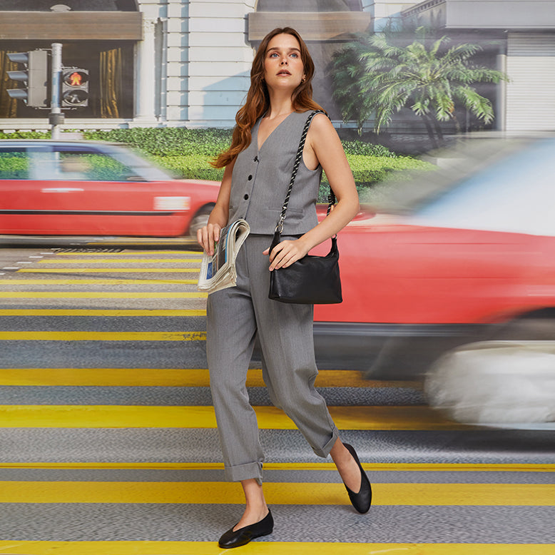 A stylish, timeless design that exudes understated minimalism. Effortlessly pairs with everything—from casual to dressy. A true wardrobe staple you’ll reach for on heavy rotation. Flat-packs for easy travel and smart packing.