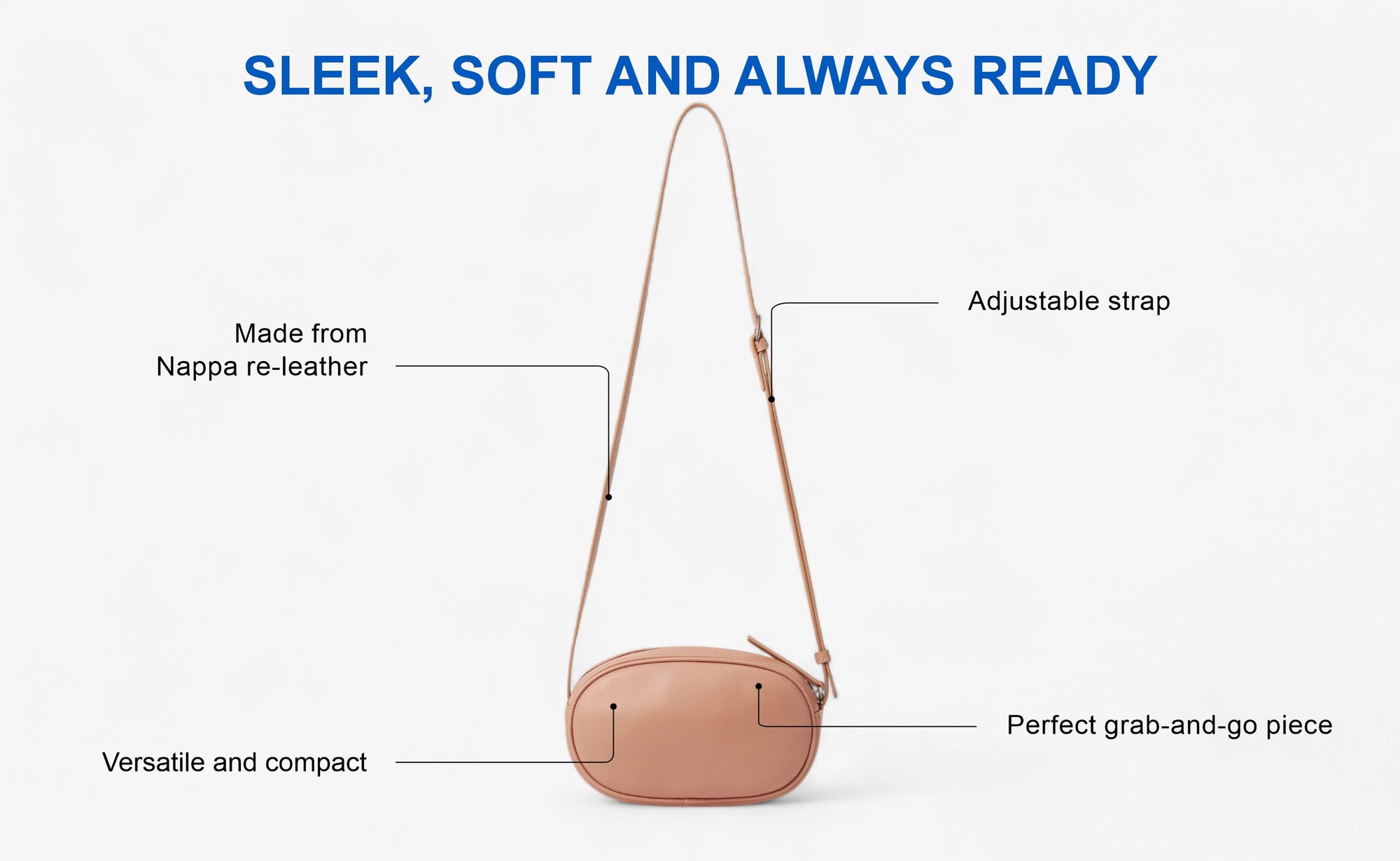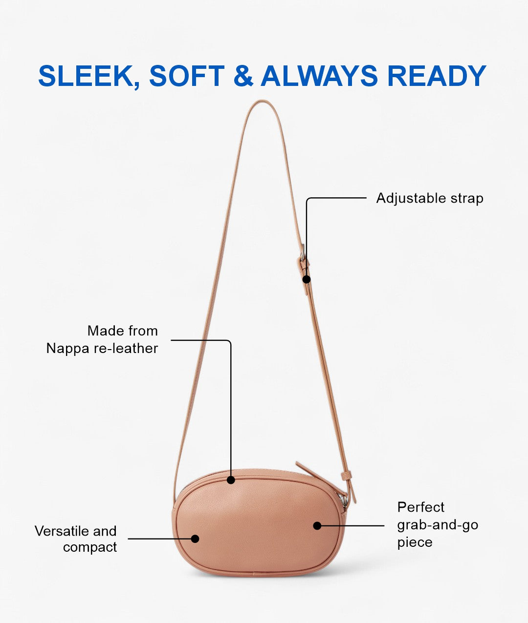 This sleek oval crossbody brings effortless minimalism to your everyday wardrobe. Lightweight and versatile, it’s your go-to for coffee runs, dinner dates, and everything in between. Pair it with soft tailoring or tonal basics—its understated design keeps every look crisp, modern, and endlessly wearable.