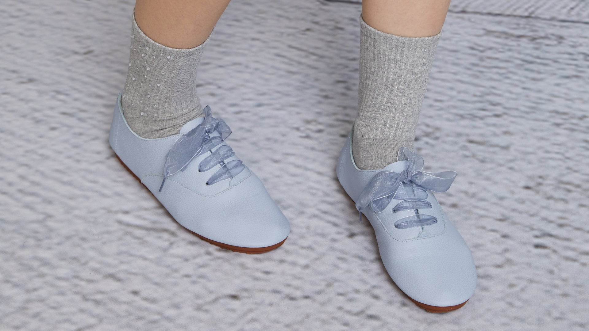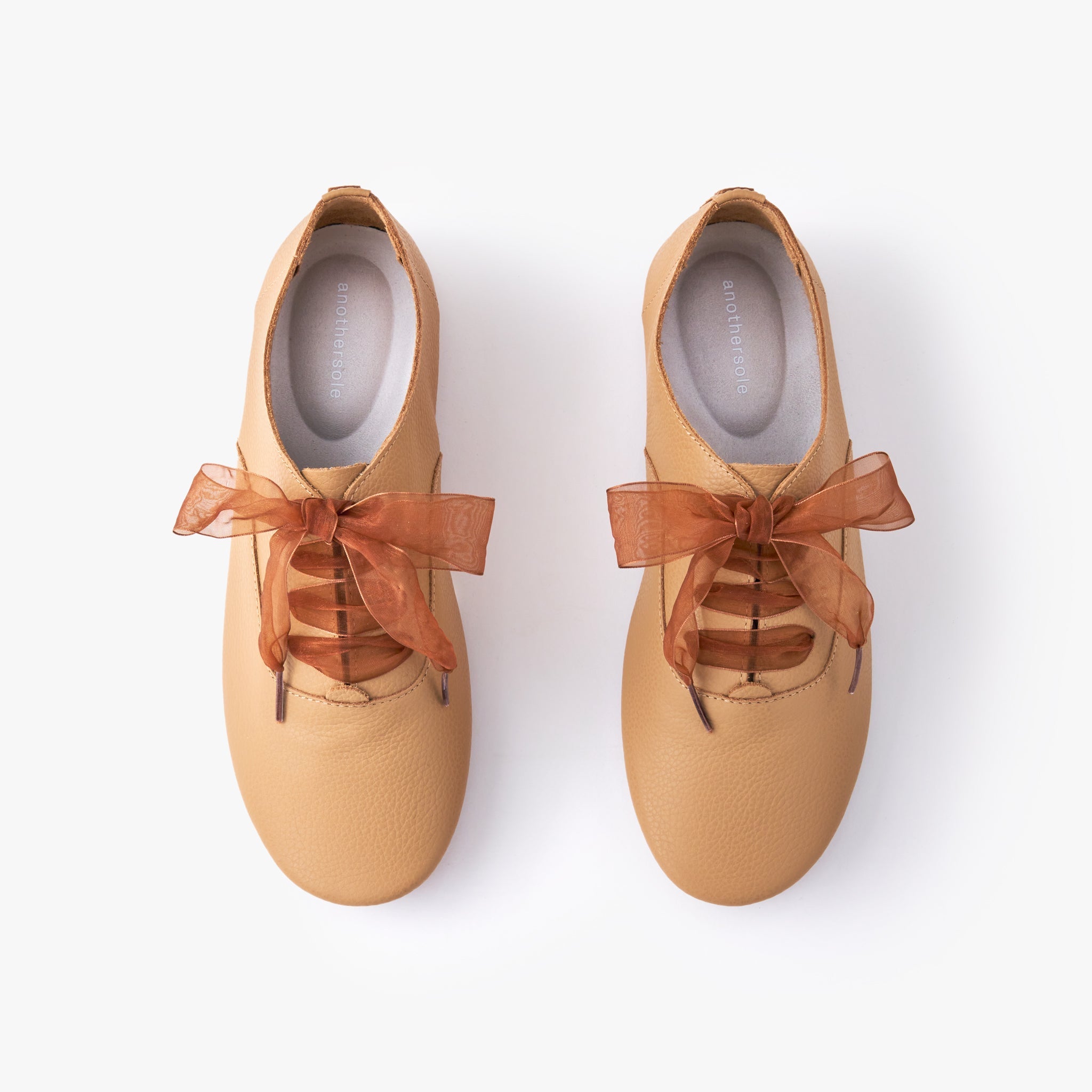 • 431C1BE3-2884-4994-9D4E-E96E091346AE Created with sketchtool. These shoes bring a fresh twist on timeless elegance, with a touch of romantic charm. The organza laces and interchangeable options offer versatility, while the lightweight design and flexible rubber sole provide all-day comfort. Crafted from 100% Italian Pebbled Bovine Leather, these shoes mold to your feet with every step, offering a luxuriously soft feel that moves with you.