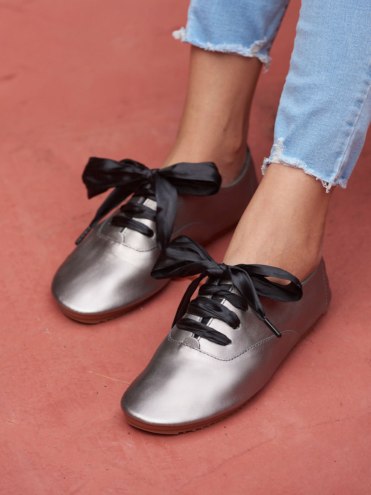 - It’s hard not to notice the captivating sheen of smooth leather adorned with wide ribbon laces. Goes charmingly well with capris or summer shorts, this supple pair of leather shoes bestows a sense of adventure on whoever is wearing it. Not forgetting the breathable sports footbed which gently disperses the impact of each step made. Crafted with 100% Argentinean bovine leather, truly a joy to wear.