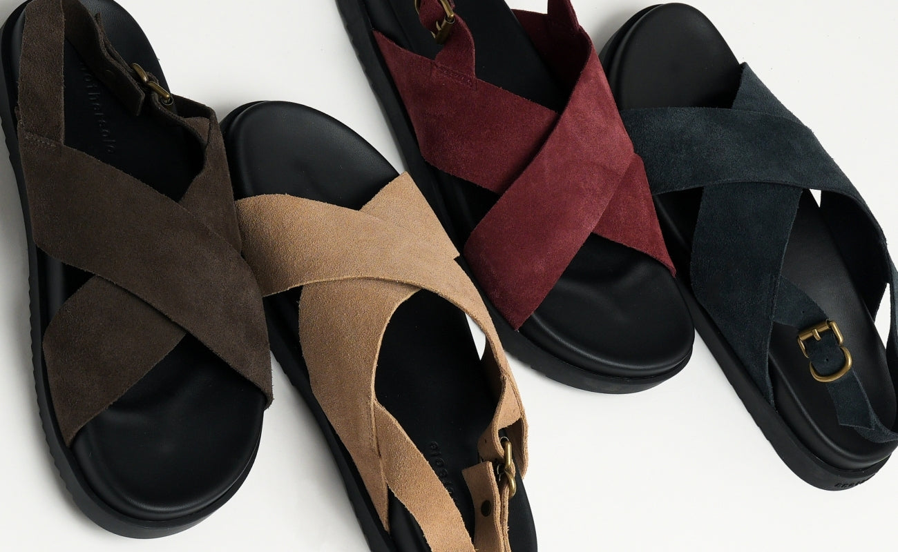 • 431C1BE3-2884-4994-9D4E-E96E091346AE Created with sketchtool. Minimalist design meets maximum comfort. Your forever sandal.