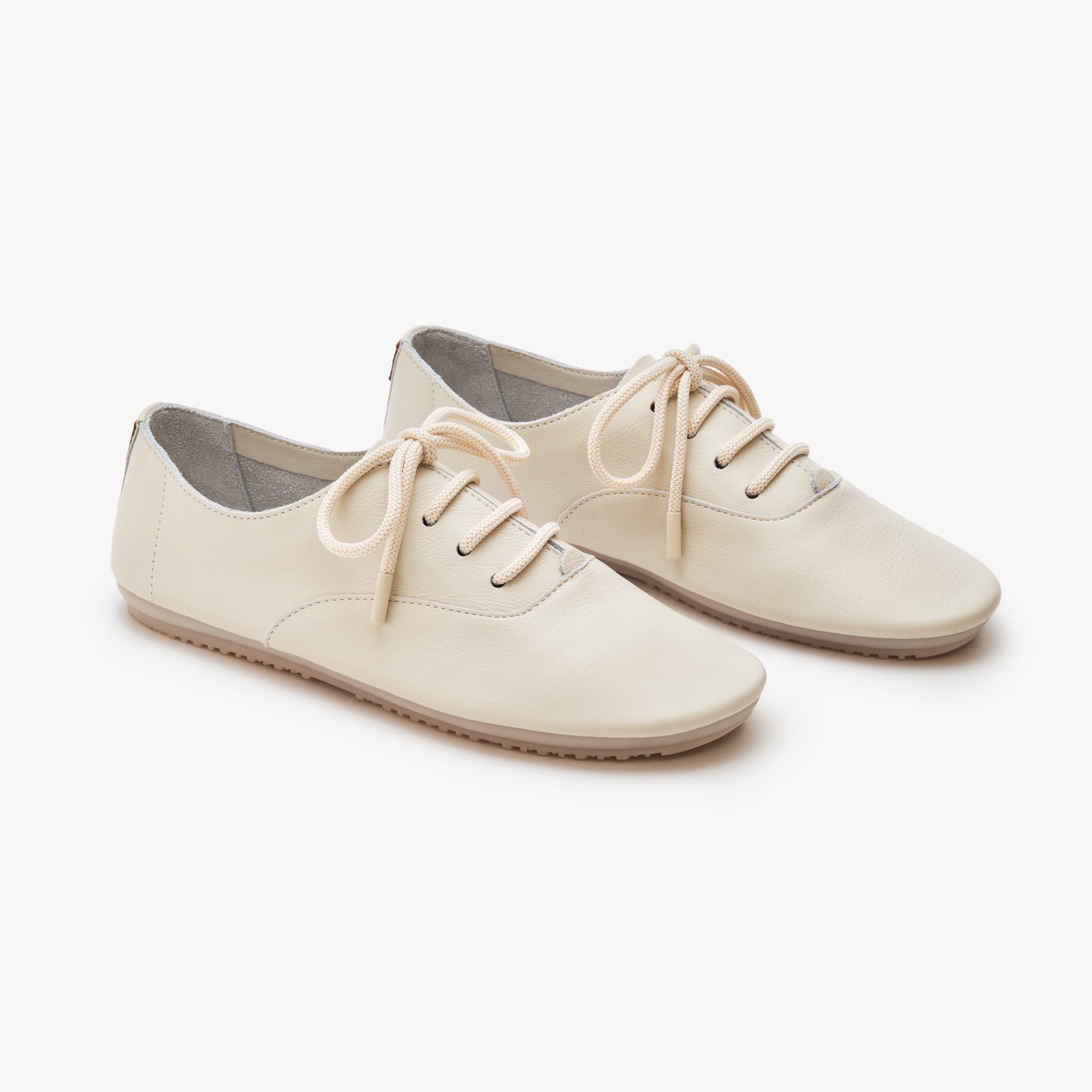 - Mia brings a fresh take on timeless comfort, with a touch of playful flair. Playful rope shoelaces and jello-like rubber outsoles provide a cushioned feel while elevating your look. Made from 100% Spanish Bovine leather, these flats offer a luxuriously soft feel that molds to your foot with every step.